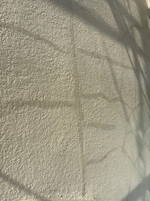 一般的なローラーでの塗装ではこのひび割れは浮き出てしまうため、マスチック塗装(目の粗いローラーを使用することで一塗り多くの塗料を塗布できる)で対応しています。通常は凹凸無いように塗装するのですが、今回のケースでは大きく凹凸を付けることで厚みを出し、ひび割れが浮き出ないようにしています。使用する塗料も通常より多くなるため費用も掛かりますが、はっきり浮き出ていた補修跡は綺麗に消えました。