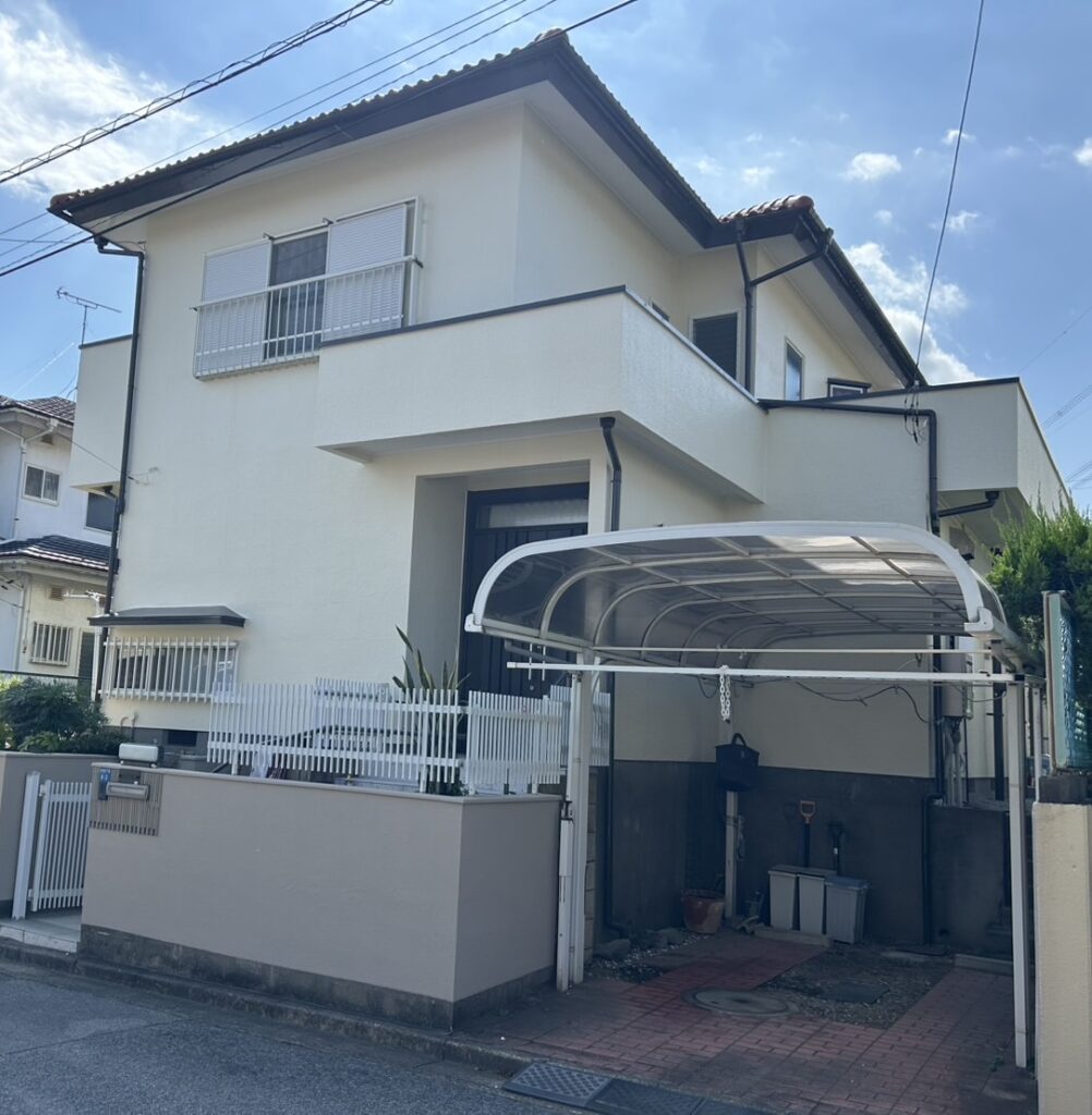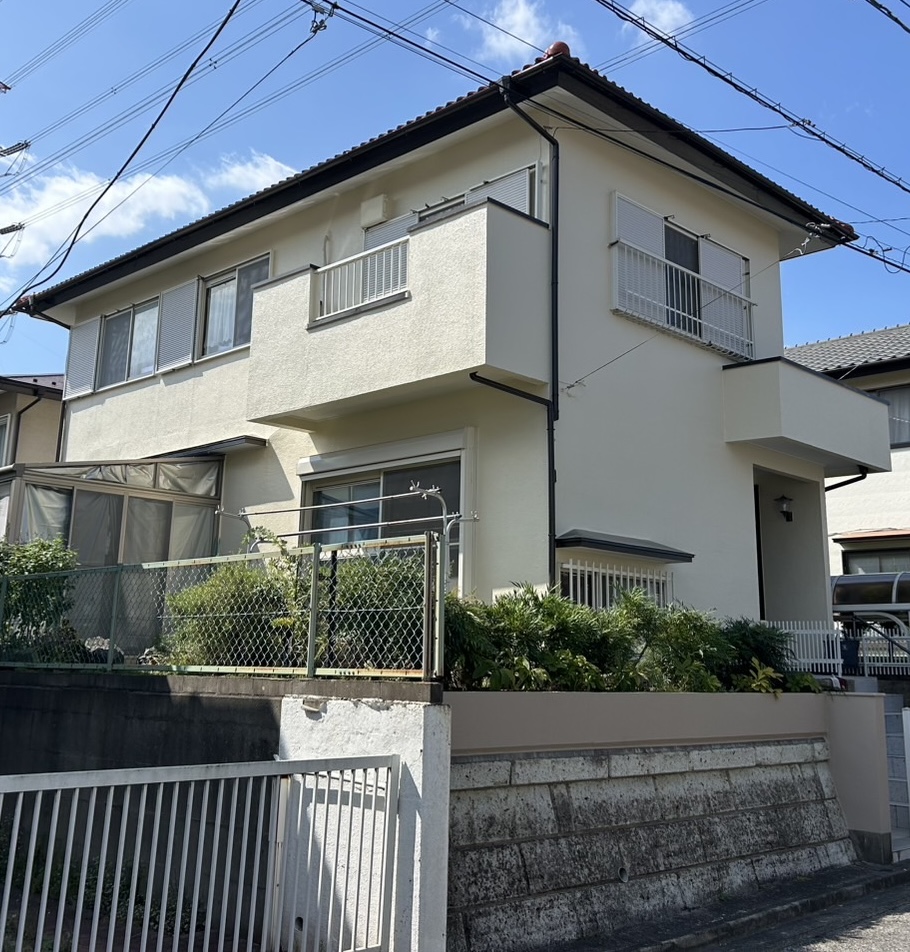 先月より作業をしていた外壁屋根塗装が完了。ひび割れ補修の跡も綺麗に消えました!