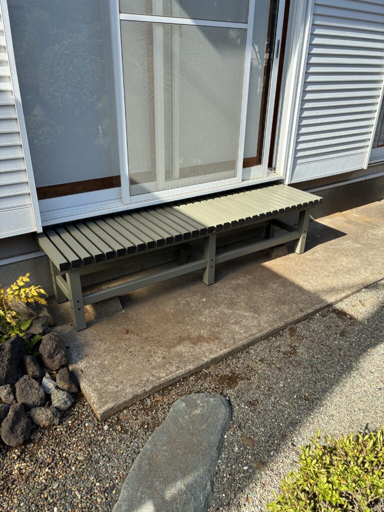 全体的に腐食が進んでしまった木製の濡れ縁をアルミ製に交換しました。既存品がかなりしっかり固定されており、最後はノコギリで束柱を切断。無事に設置が完了しました。今回はアルミ製なので腐食もしませんよ。